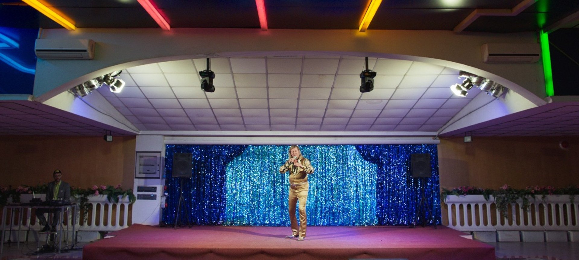 He funds his dissolute lifestyle and addiction to gambling with concerts for busloads of tourists and sexual favours for his female fans.
