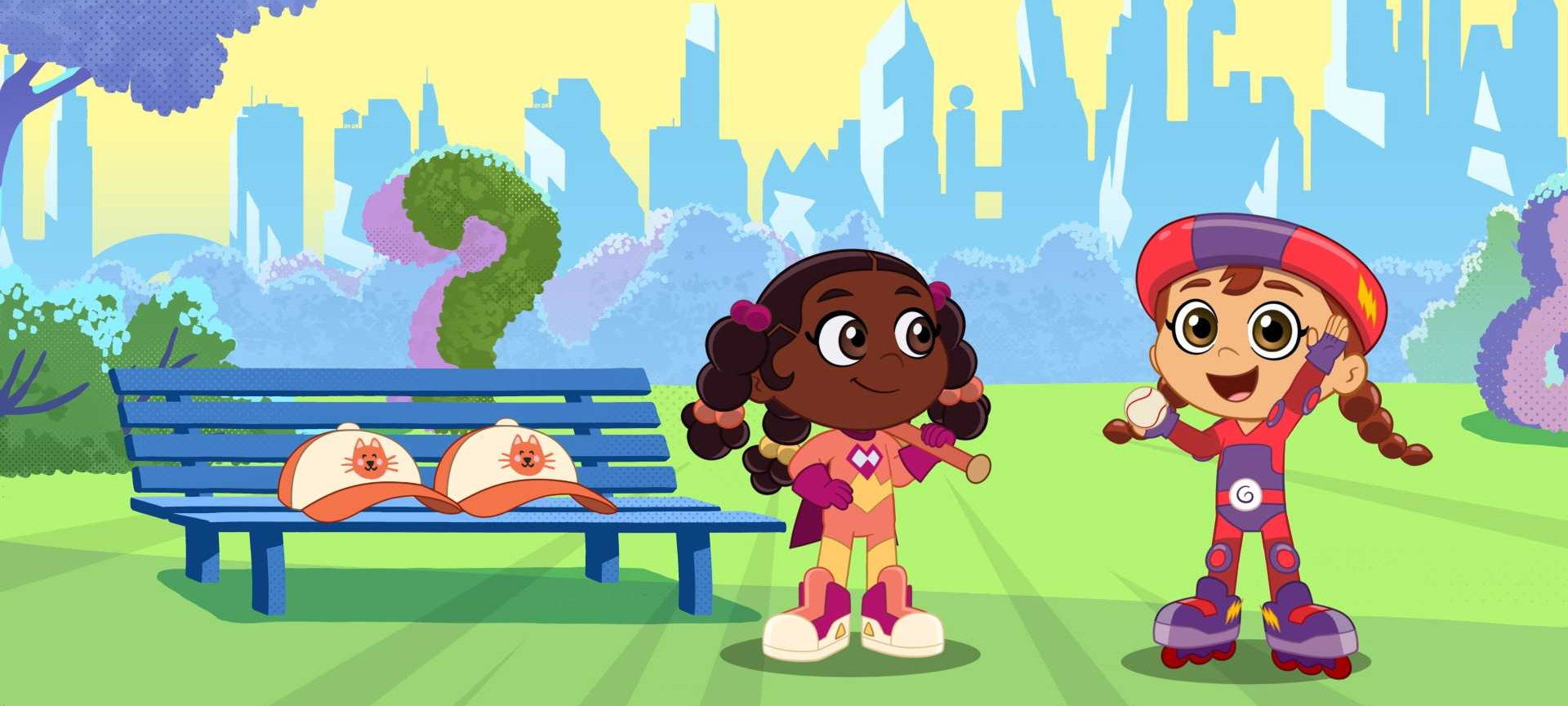 Power Paige and Wonder Red are about to play baseball when The Eraser takes their hats and bat. Now they need to get their equipment back by spelling words that end in "at."